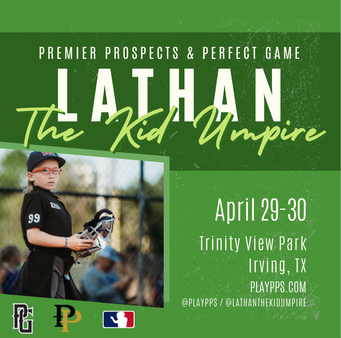 Lathan will make a guest appearance at the the Premier Prospects and Perfect Game tournament at Trinity View Park in Dallas/FW.